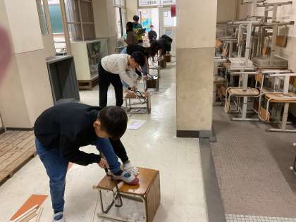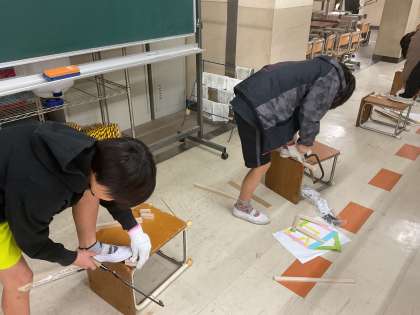 のこぎりを使った作品作りをしています。