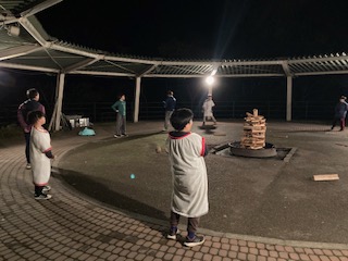 19時半からのキャンプファイヤーに向けて準備をしています。