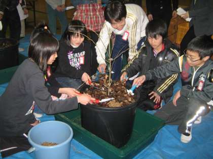 6年生の代表12名が,鉢に土と腐葉土を入れ,水をやってくれました。