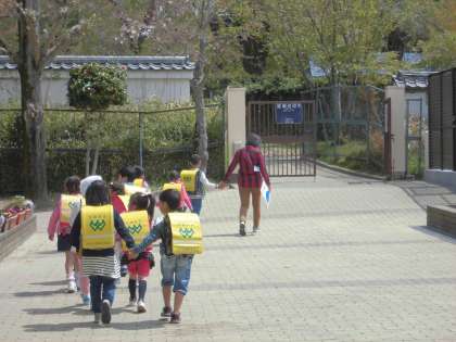 昼前に1年生は,集団登校で下校しました。