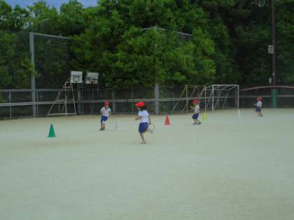 リングバトンの渡し方を練習したり,グループで走順を考えたり,コーンの回り方を練習したり・・・。