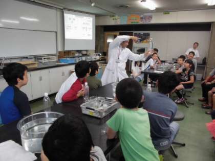 4年生〜6年生は,「浮沈子」を作り,2・3年生は様々な展示を見たり触れたりしながら回りました。イモリやザリガニなど小さな生き物に触れられるコーナーや工夫された大型おもちゃなどもあり,子どもたちの歓声があがっていました。