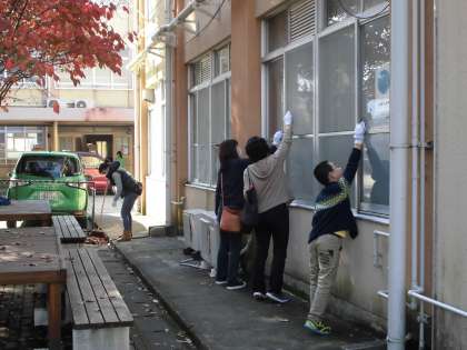 親子ふれあいそうじDAY 1 公開日 2016/11/12 更新日 2016/11/12 学校行事 11月12日(土) PTA主催の「親子ふれあいそうじDAY」が行われました。少し肌寒い朝でしたが,秋晴れのよいお天気で,みなさん汗をかきながら一生懸命学校をきれいにしていただきました。