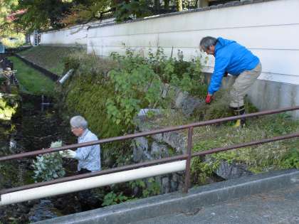 地域の方々にもお世話になり,学校前のお堀もとてもきれいにしていただきました。