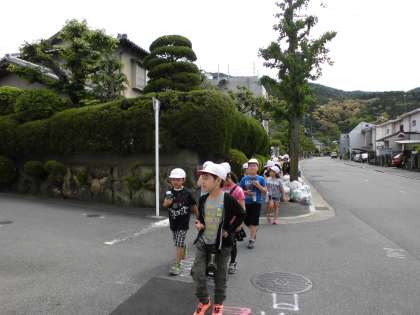 生活科の学習で町たんけんに行きました。今日は校区の北の方面を歩きました。いつも歩いている通学路でも新たな発見があったり,また家が南の方面の子ども達は初めての道だったりと楽しいたんけんになりました。明日は,見つけてきたことを交流し合い,拡大地図にまとめていきます。
