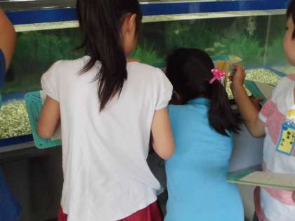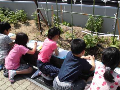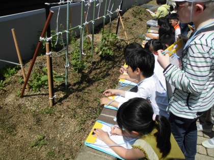 国語 かんさつ名人になろう 公開日 2017/05/30 更新日 2017/05/30 2年生 国語の学習で,観察文の書き方を学習しています。生活科で育てている野菜や学校にいる金魚をくわしく観察し,特徴や様子を文章にまとめていきます。暑い中ですが,一生懸命に観察していました。