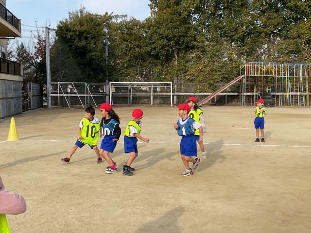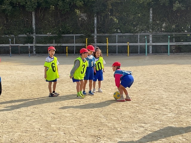 今日で最後のボールけりゲームでした。たくさんゲームをしてきましたが、回数を重ねるごとにパスも上手になっていきました。
