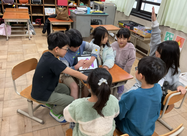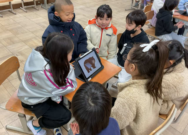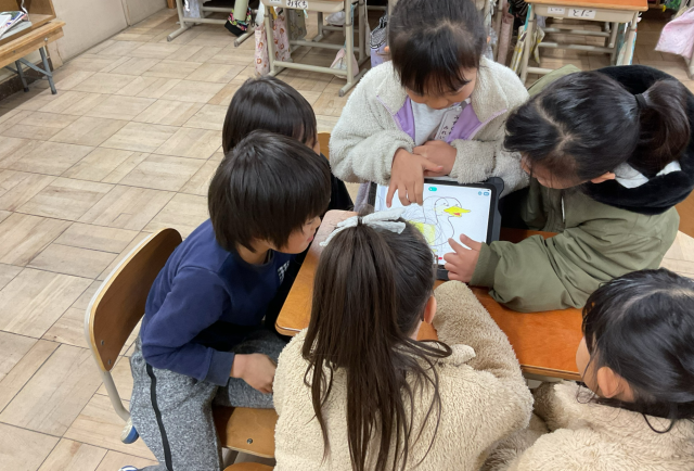 自分の好きな動物を好きな色で塗って、グループでつばげた世界で一つだけの絵本。