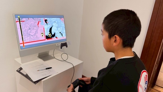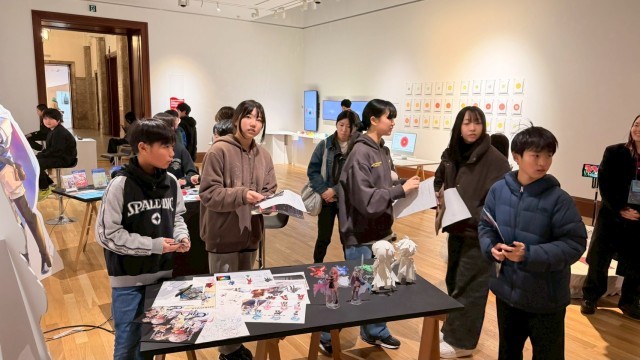 いろいろな作品に興味津々の様子です。体験できるもののあり、楽しく回覧しています♪