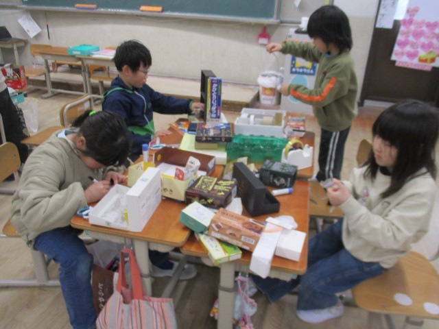 自分たちでつくった小さな友だちの家をつくりました。