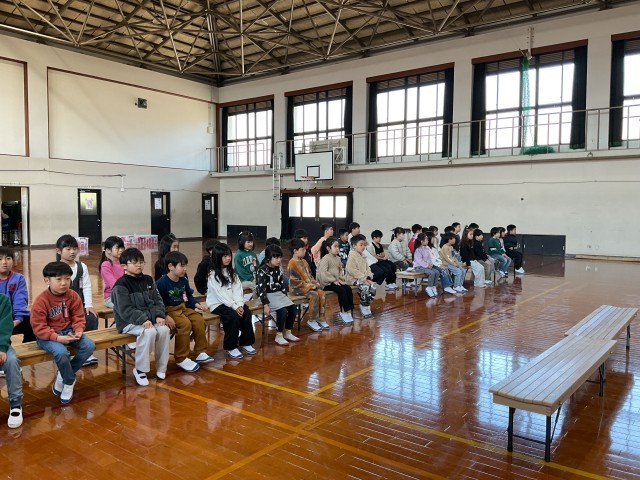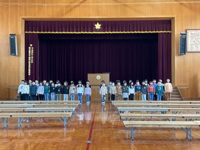 新しく入学してくる1年生を気持ちよくお迎えするために、おむかえの言葉を練習しています。良い姿勢で話を聞いています。毎日頑張って音読してほしいです。