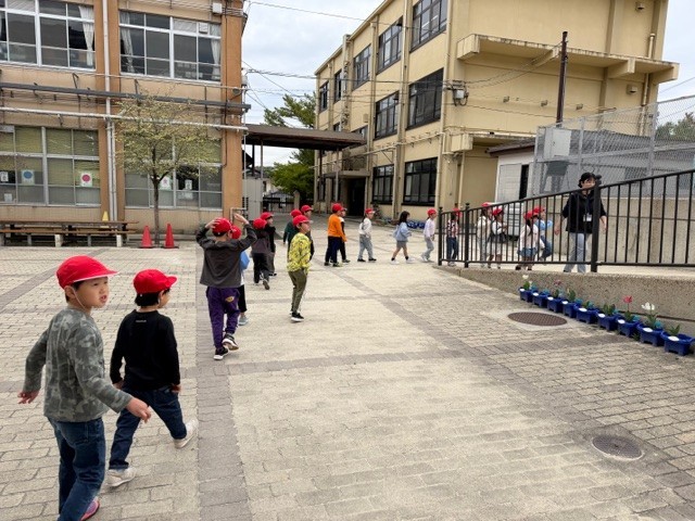 【1年】学校初日☆ 公開日 2026/04/15 更新日 2026/04/15 学校の様子 中庭や運動場に出て、かんたんにルールや用具の確認をしたりしました。「早く外で遊びたい!」とわくわくしている様子でした♪