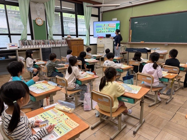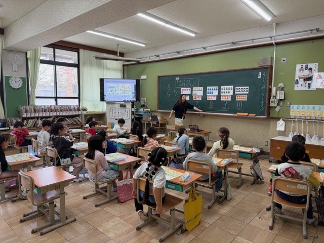 ブロックを使って、数を数え、数字の書き方についても学習をしています。