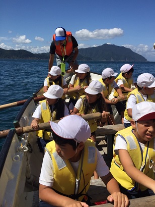 みんなで力を合わせて漕ぎ進みます。
