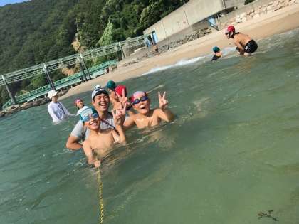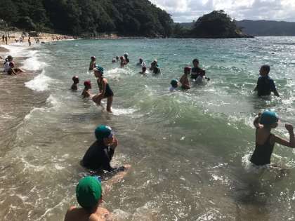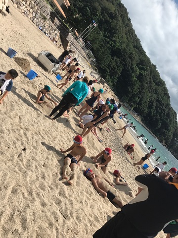 遊泳区間を限定して,海と浜と分かれて活動をします。