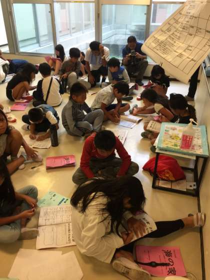 今夜は,キャンプファイヤーがあるので,夕食前に早めの振り返り活動です。