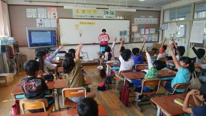 クイズ形式で,大豆から作られている食べ物やその栄養について,