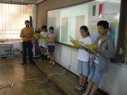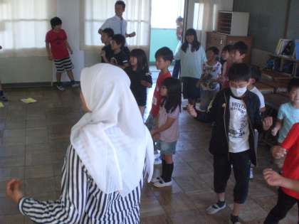 多文化のつどいでは,それぞれのブースにおいて,6年生が進行役を