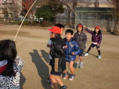 息が白くなるほど寒い中,4年生は毎日元気よく運動場に飛び出して行き,全員で練習しています。頑張って体が温まり,半そでで教室に帰ってくる人もいるほど・・