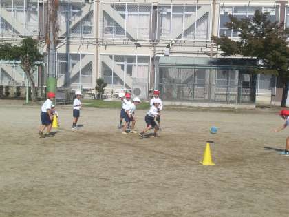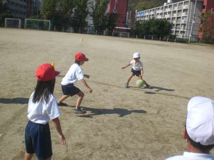 体育の学習で,ボール遊びをしています。