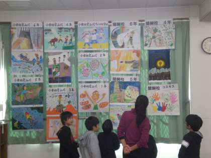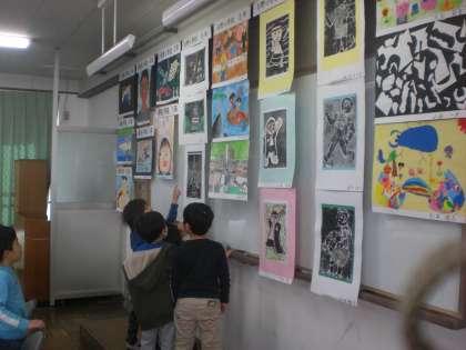 2月5日〜2月7日まで,伏見東支部10校の子どもたちの絵画作品を