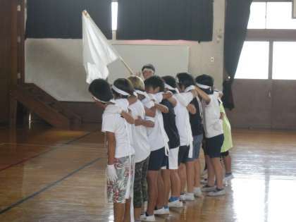運動会に向けて,4〜6年生の応援団が中間休みに練習しています。赤組,白組に分かれて声を張り上げながら,やる気が伝わってきました。運動会の盛り上げ役として,団結してがんばってほしいと思います。