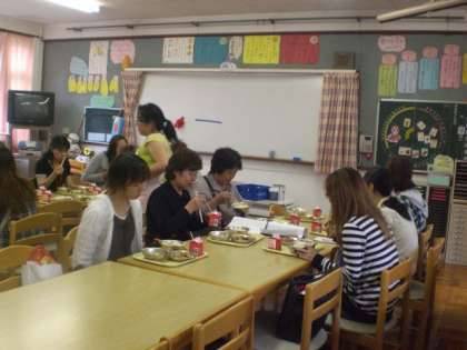 *5月26日(木)に保護者の皆さんを対象に,「給食試食会」を実施しました。日々の給食を通じて子どもたちが学ぶべき「食育」について,本校の栄養教諭から話をさせていただきました。その後,今回は子どもたちに人気のメニュー”プリプリ中華炒め”を家庭科室でレシピ通りに作って,ランチルームでいただきました。「昔の給食とは全然違いますね。」と,参加され満足していただけた様子でした。