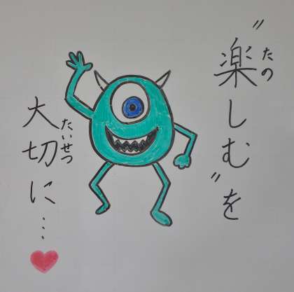 今日(きょう)は,みじかいじかんでしたが,みんなの元気なかおを見ることができて,とってもうれしかったです。早くみんなとたくさんのじかん,べんきょうしたり,あそんだりできることをたのしみにしています。