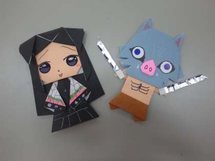 このあいだ,高学年のおともだちが,おりがみでつくったさくひんを見せてもらいました!とってもじょうずですね。かみを「内」がわにおったり,はさみで「切」ったりして作ったそうです。みんなもおりがみですてきなさくひんをつくってみてください!