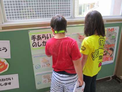 校長先生から正しい手の洗い方や咳エチケットなどの話があり,話をしっかり聞くことができました。