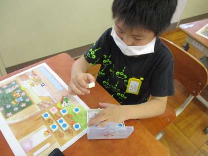 算数で,数図ブロックを使って,どちらの数が多いのかを調べる学習をしました。数図ブロックをきれいに並べると,どちらが多いのか一目で分かるということが分かりました。みんな集中しながらよく頑張っています!!