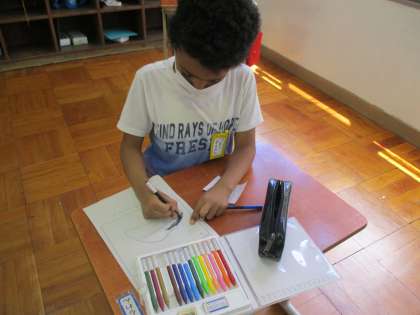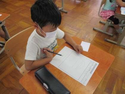 生活科で,あさがおの種の観察をしました。「目・鼻・手・心」いろいろなところを使ってじっくり観察をし,「さわるとかたいな。」「色は,黒だけど茶色もまざっているな。」などと沢山の発見がありました。はじめての観察カードも一生懸命に書くことができました。