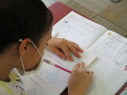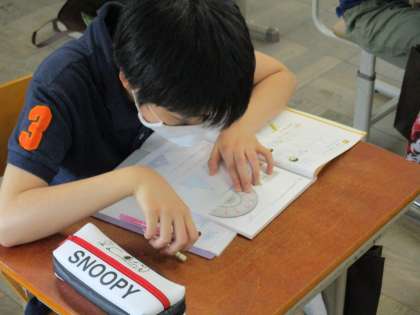 休校中の課題にも分度器を使う宿題を出していたので,家で少し使ってみた子も多く,1時間目にしてしっかり使えるようになっている子が多かったです。
