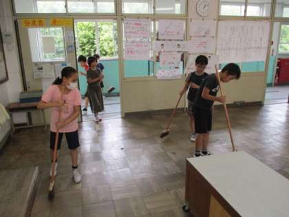 みんな新しい掃除場所を一生懸命がんばって掃除していました。