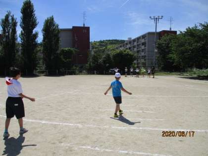 新体力テストでは今日はソフトボール投げと立ち幅跳びをしました。