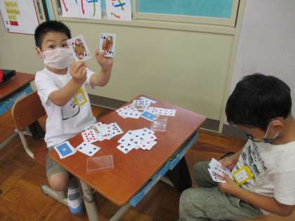 梅雨の時季となり,雨が続きそうですが,雨の日の休み時間は,各教室に配られている雨の日グッズのオセロやトランプなどを使って遊んでいます。ほかにも,粘土をしたり,塗り絵をしたりと,思い思いの楽しい時間を過ごしていました。