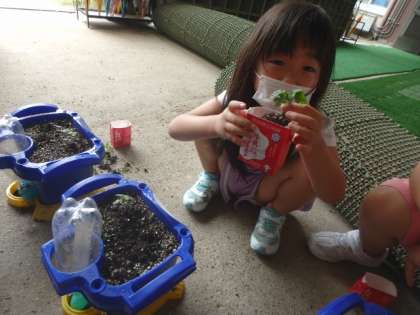 また,子どもたちは牛乳パックやプリンのカップに,まびいたミニトマトの芽を入れて持って帰っています。ぜひお家でもミニトマトを育ててみてください。