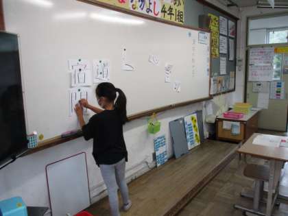 漢字には,「へん」と「つくり」以外にも「かんむり」や「あし」などいろいろな名前がついた部分があることを知り,それぞれの名前と共に,漢字の読み方もみんなで確認しあいながら楽しく学習することができました。