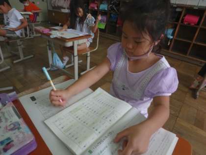 漢字には,同じ部分を持つ漢字があります。例えば「町」と「男」。共通する部分は「田」です。この学習では,今まで習った漢字,これから習う漢字の中から,同じ部分をもつ漢字を探しました。子どもたちは教科書や漢字ドリルと見つめ合いながら,すらすらとワークシートに漢字を写していました。