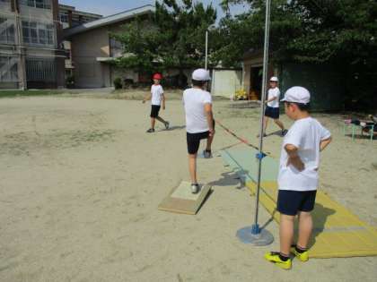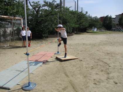 これから助走・ふみ切り・空中動作などを工夫して自分の記録に挑戦していってほしいと思います。準備や後片付けを積極的に行う姿はさすが6年生でした。