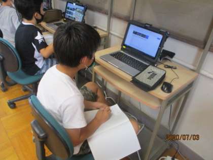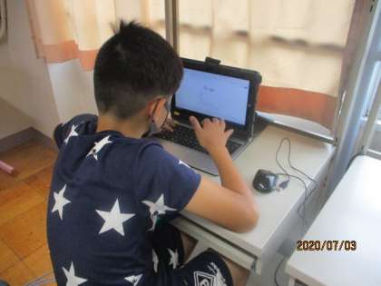 先日授業で練習したタイピングの練習もいきており,ローマ字表を確認しながら自分たちで決めた内容を工夫しながら調べていました。