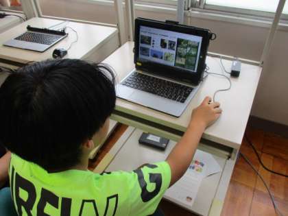 今日はその題材となる鳥の写真を,一人一人がタブレットを使って探しました。