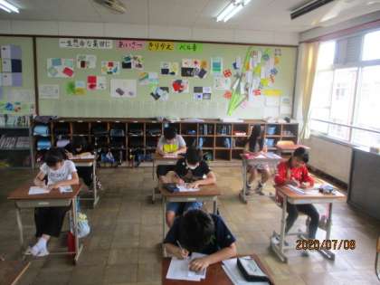 書写の学習では,硬筆に取り組みました。お手本をしっかり見て,一文字一文字に気持ちを込めて書くことで,字形の整った素晴らしい文字になりました。