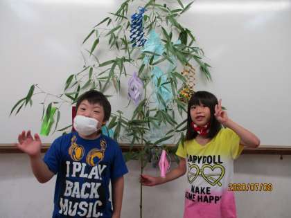 とても素敵な七夕かざりが出来上がり,二人とも大満足の様子でした。