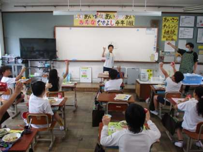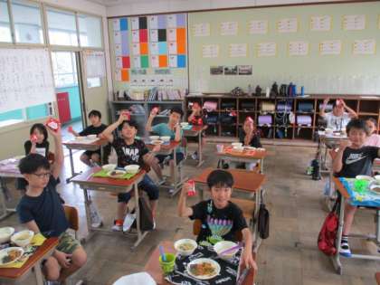 7月のお誕生日の子が続いたので,連日,給食で乾杯しました。