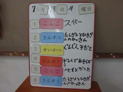 かざり係は七夕の笹に,きれいな飾りを付け足し,がくしゅう係は,その日の予定を前の日に書いてくれることになりました。自分たちでクラスをよりよくしたい!と思う気持ちがすてきです!