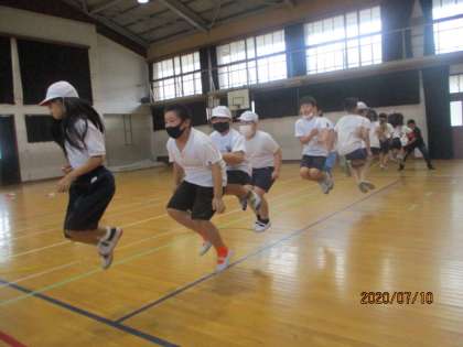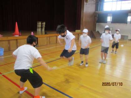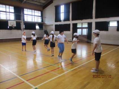 残念ながら雨で運動場が使えなかったため,体育館で体ほぐしや大縄跳びをしました。今日は,少人数のグループに分かれて,いろいろな跳び方に挑戦しました。自分たちで声をかけたり,縄を回したり…楽しんで活動できるように行動することができました★