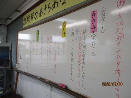 国語科「きいて きいて きいてみよう」では,インタビューをするときに,きき手・話し手・記録者のそれぞれの立場の大切なポイントを考えました。