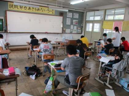 算数や社会のテストが近く,宿題や復習,分からないところは先生に聞いてやろうと,積極的に6時間目の授業後も残って机に向かう子どもたち。