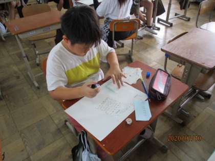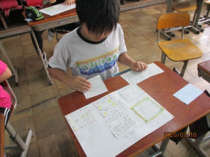 1年生にメッセージカードをプレゼントしようと最後6年生で仕上をしました。1年生に喜んでもらえるように工夫してがんばっています。